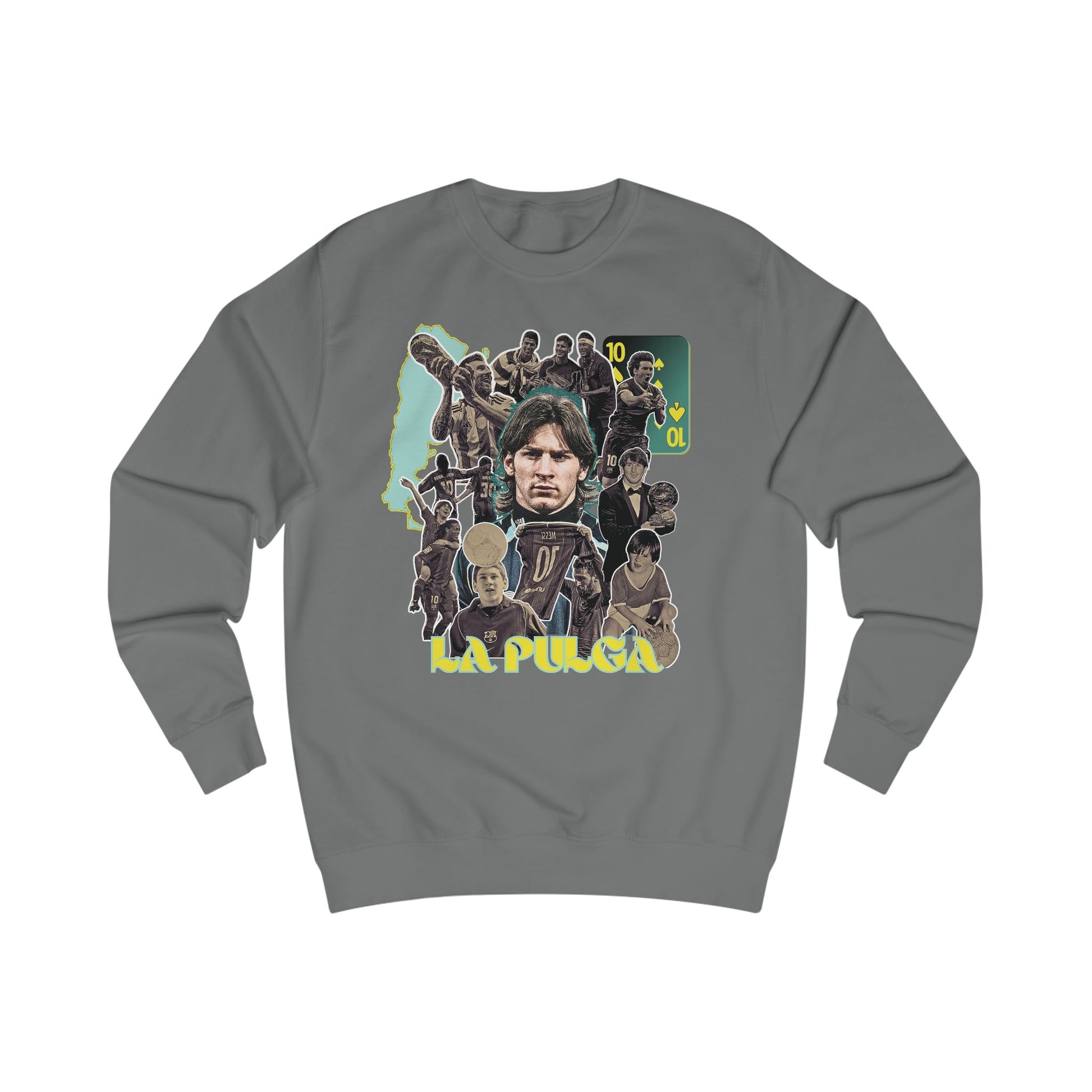 Celebrate the legendary Lionel Messi, the ultimate football GOAT, with this oversized retro sweatshirt. Perfect for soccer fans, collectors, and streetwear enthusiasts, this pullover showcases Messi’s iconic moments with Argentina and Inter Miami, blending vintage aesthetics with modern comfort.